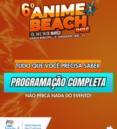Iniciou nesta sexta-feira (13), 10h, a 6ª edição do Anime Beach Imbé. O evento voltado aos fãs da cultura geek, cosplay, animes e games acontece no Ginásio Municipal Engenheiro Floreal Sala, no Centro, retorna ao município após sete anos e tem apoio da Prefeitura de Imbé. A entrada no primeiro dia é gratuita, das 10h às 19h.