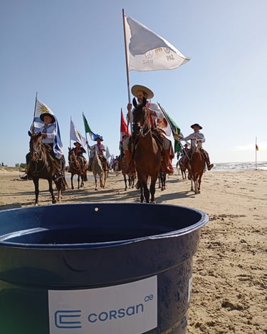 Tradicional no Estado, a Cavalgada do Mar chegou à 40ª edição em 2026 e com ela a participação fundamental da Corsan na hidratação dos animais durante os sete dias de programação no Litoral Norte. A Companhia forneceu água tratada nos pontos de apoio na beira da praia, concentração e descanso, distribuídos nos cerca de 210 quilômetros percorridos pelos cavalarianos, de Torres a Balneário Pinhal, de 24 a 31 de janeiro.