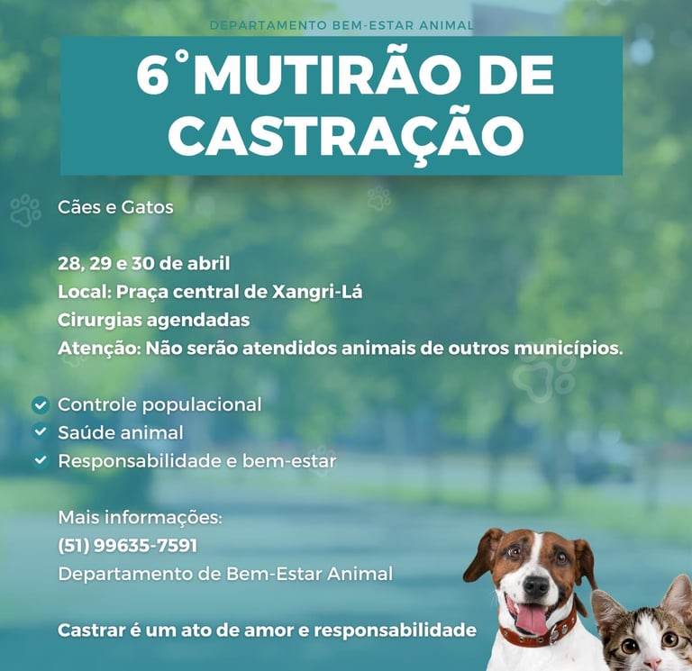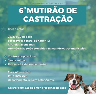 CASTRAÇÃO: de cães e gatos acontece em Xangri-lá!