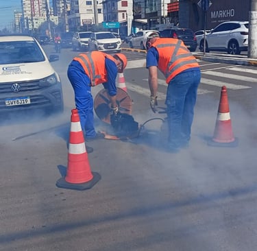 Corsan fiscaliza ligações de drenagem de água das chuvas à rede de esgoto doméstico nos bairros Centro, Santa Luzia e Santo Antônio, em Capão da Canoa