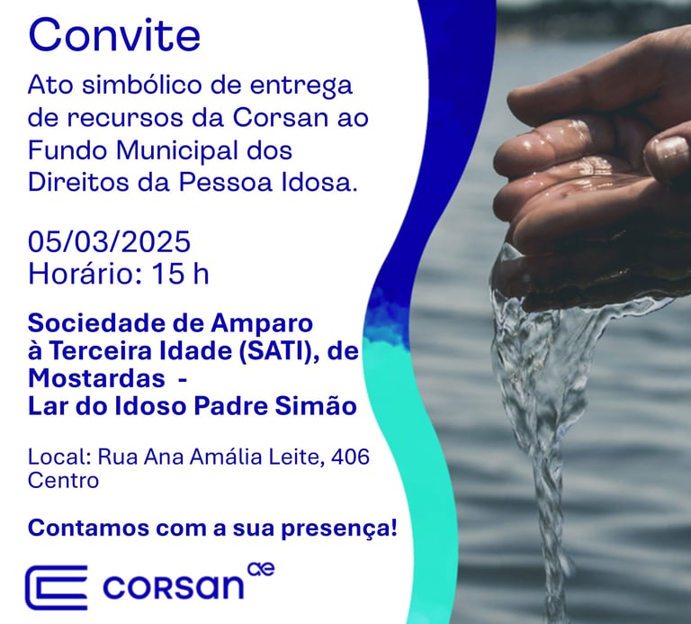 A Corsan irá entregar, nesta quinta-feira, 5, na Sociedade de Amparo à Terceira Idade (SATI) – Lar do Idoso Padre Simão, em Mostardas, o certificado de doação de mais de R$ 112 ao Fundo Municipal dos Direitos da Pessoa Idosa. A entidade foi beneficiada com o valor para melhorar a qualidade de vida dos 31 idosos que residem no local.