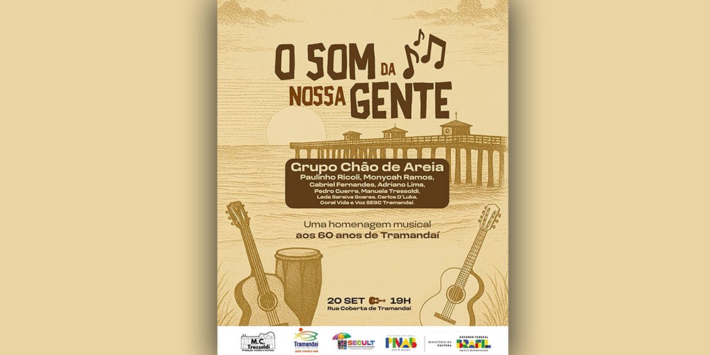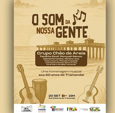 Dentro da programação especial da semana de aniversário do município, que acontece de 19 a 24 de setembro, Tramandaí receberá um grande espetáculo cultural. No dia 20, às 19h, o Grupo Chão de Areia apresenta o musical “O Som da Nossa Gente”, reunindo artistas locais em uma homenagem aos 60 anos da cidade.