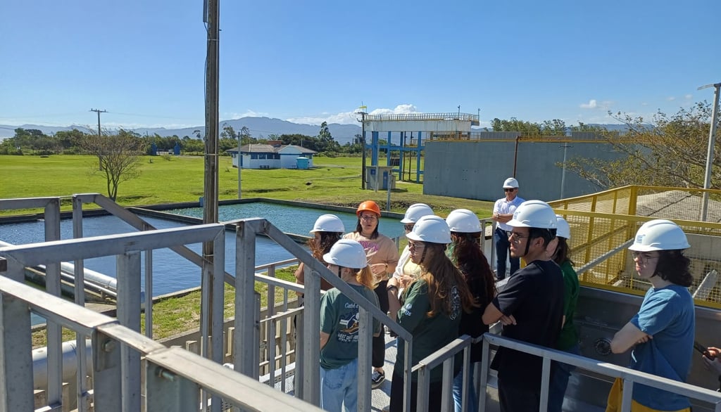 Estudantes de Gestão Ambiental Costeira da Uergs acompanham tratamentos de água e esgoto feitos pela Corsan em Osório