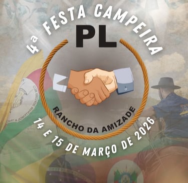 Nos dias 14 e 15/03 acontece a “Festa Campeira do PL Rancho da Amizade”, em Palmares do Sul - RS. O piquete, localizado no Rincão dos Bois, é conhecido por sua tradição familiar e hospitalidade em eventos de laço e cultura.