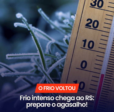 Uma nova massa de ar polar vai provocar um intenso resfriamento no Rio Grande do Sul, com mínimas abaixo de zero em diversas regiões, especialmente na Serra, Campanha e Planalto. Há possibilidade de geada ampla e até formação de gelo nas estradas.