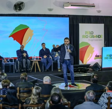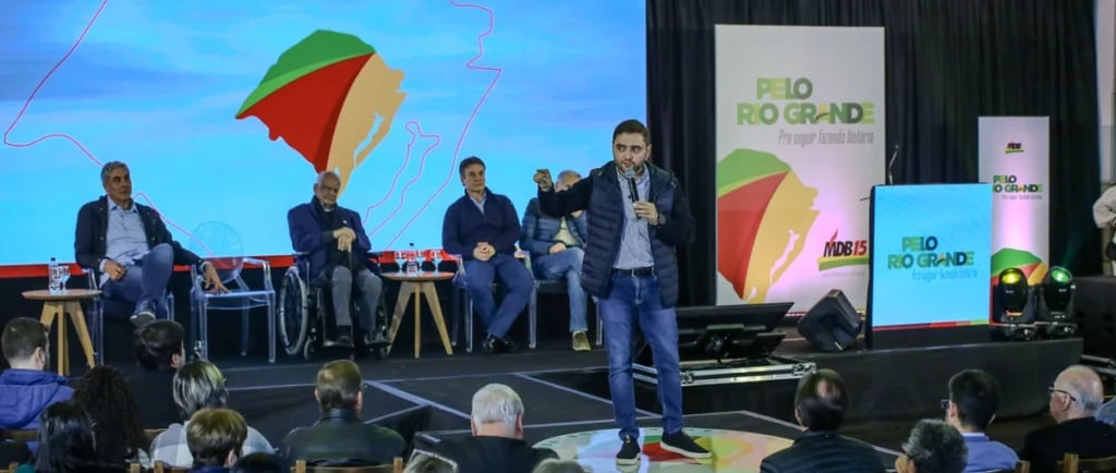 O MDB do Rio Grande do Sul lançou oficialmente neste sábado (15), em Campo Bom, a pré-candidatura do vice-governador Gabriel Souza ao governo do Estado para as eleições de 2026. O encontro reuniu cerca de 500 lideranças e filiados, marcando o início da mobilização estadual do partido sob o slogan “Pelo Rio Grande – Para continuar fazendo história”.