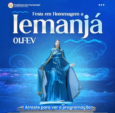 A Prefeitura de Tramandaí, através da Secretaria de Turismo, convida a comunidade e os visitantes para prestigiar a programação especial dos Festejos em Homenagem a Iemanjá, que acontece no dia 1º de fevereiro, com atividades culturais, religiosas e artísticas em diferentes pontos da cidade.