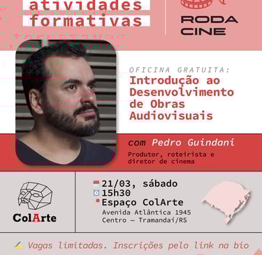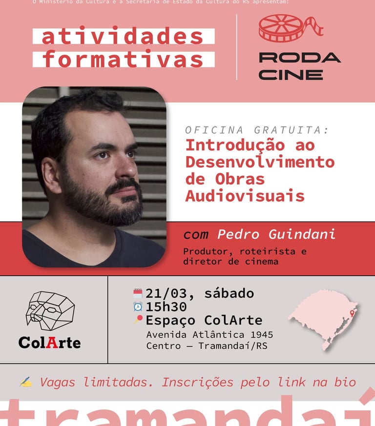 A atividade será ministrada pelo produtor, roteirista e diretor de cinema Pedro Guindani e tem como objetivo fomentar a formação cultural e incentivar o desenvolvimento de projetos na área do audiovisual.