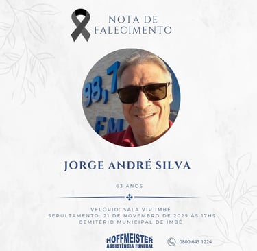 Nesta quinta-feira, 20 de novembro, faleceu o radialista Jorge André da Silva, 63 anos. Jorge André era diretor da Rádio Comunitária Golfinho FM de Imbé. Ele estava internado há mais de 30 dias no Hospital Tramandaí onde passou por cirurgias, mas não resistiu.