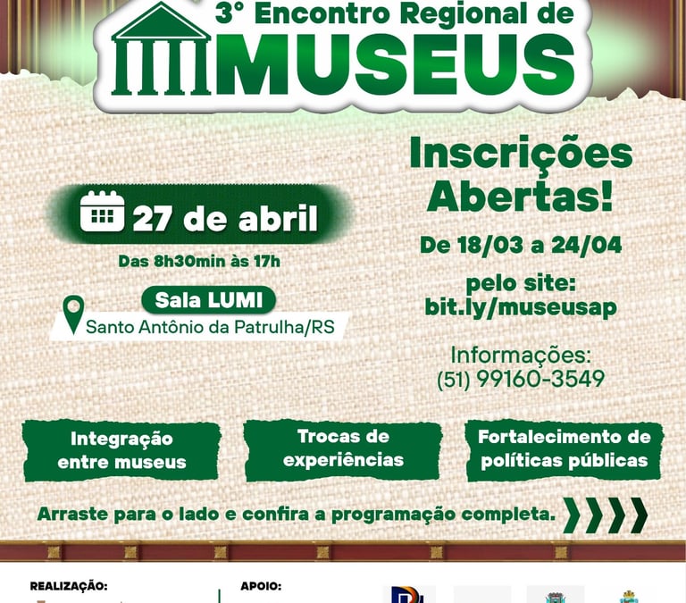 SANTO ANTÔNIO DA PATRULHA: será sede do Museus, evento que reúne profissionais da área cultural, gestores e representantes de museus de toda a região.